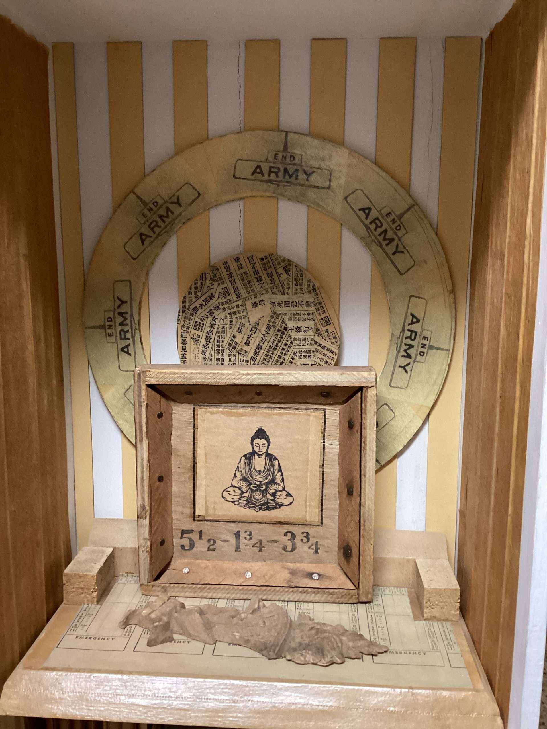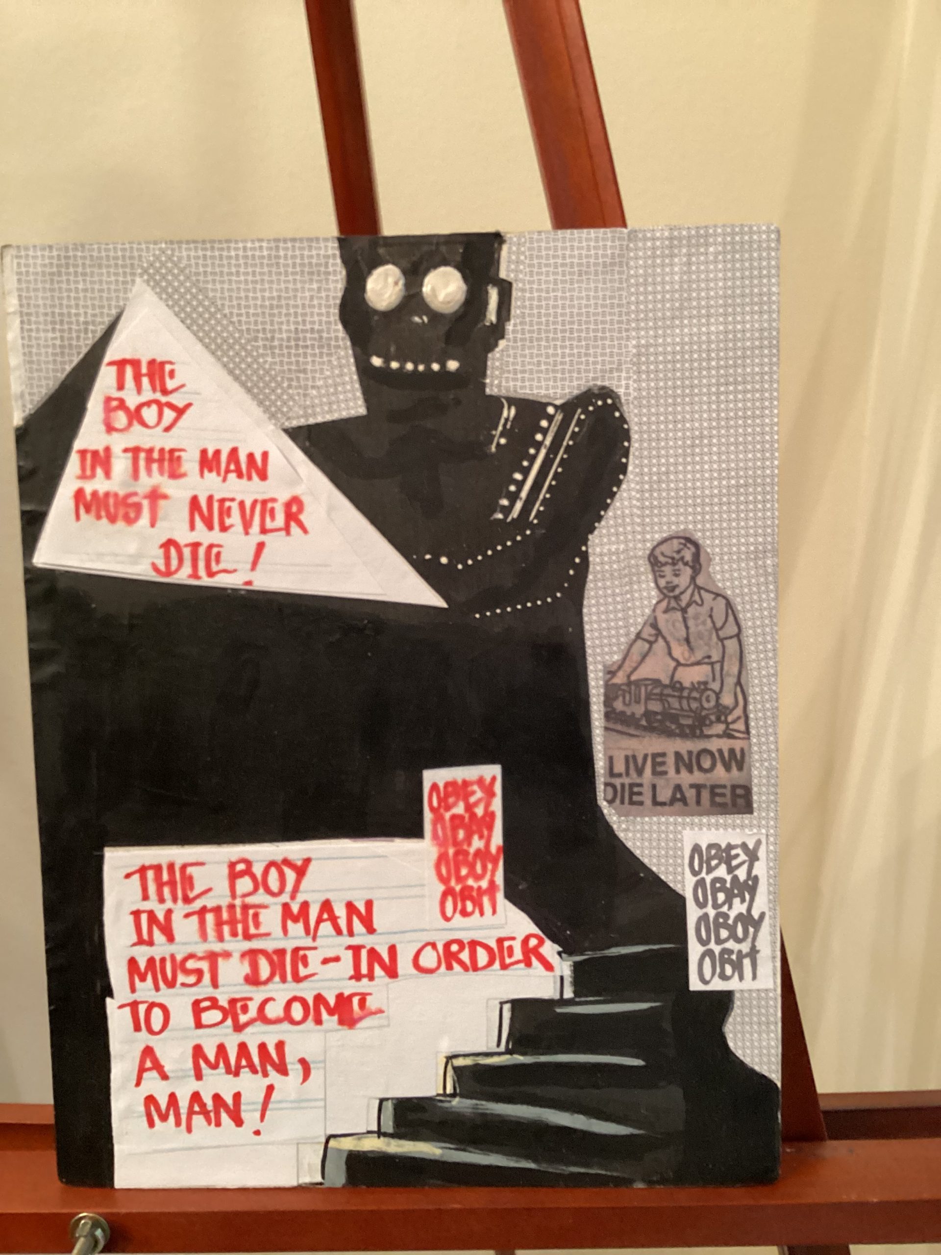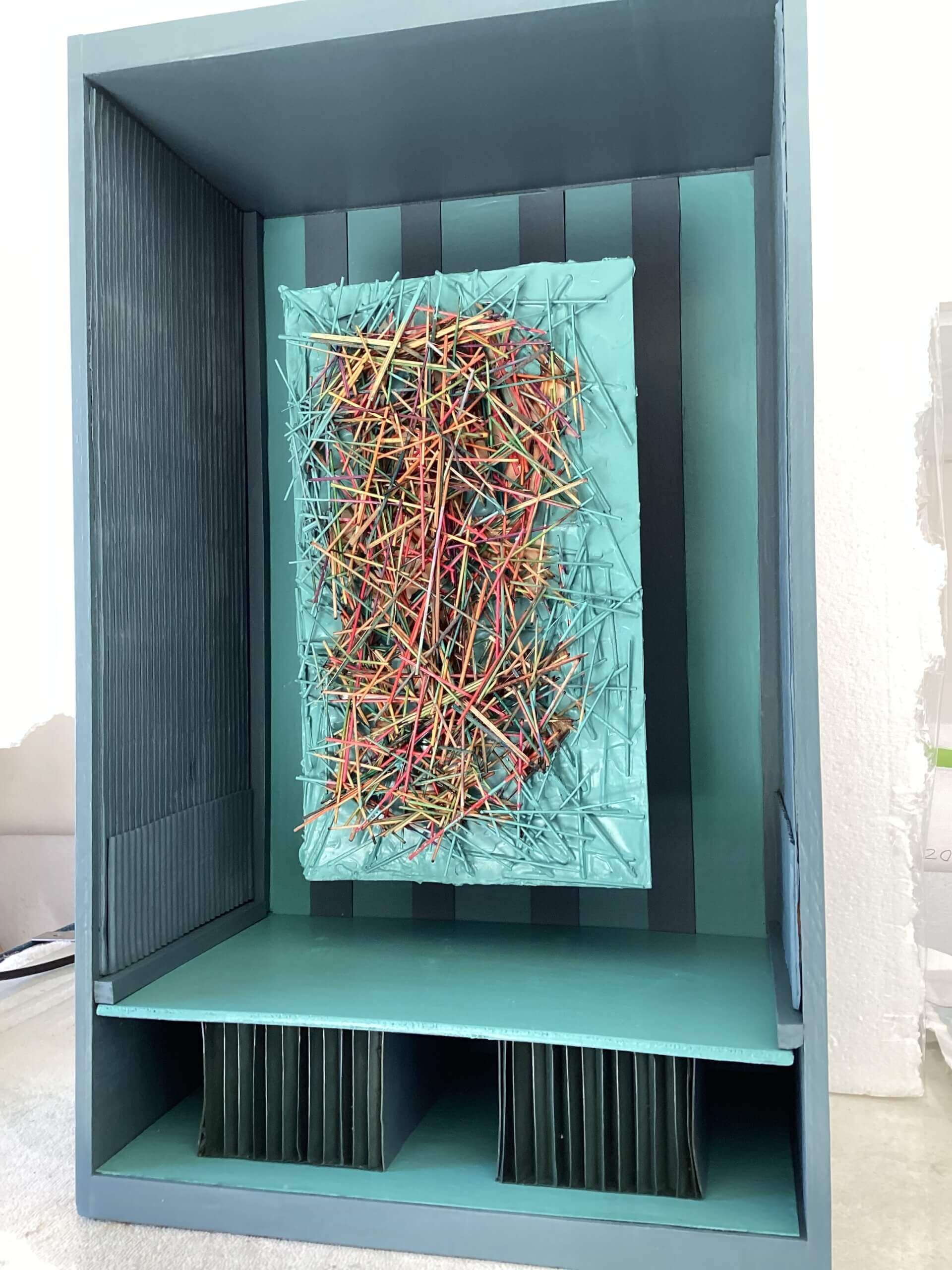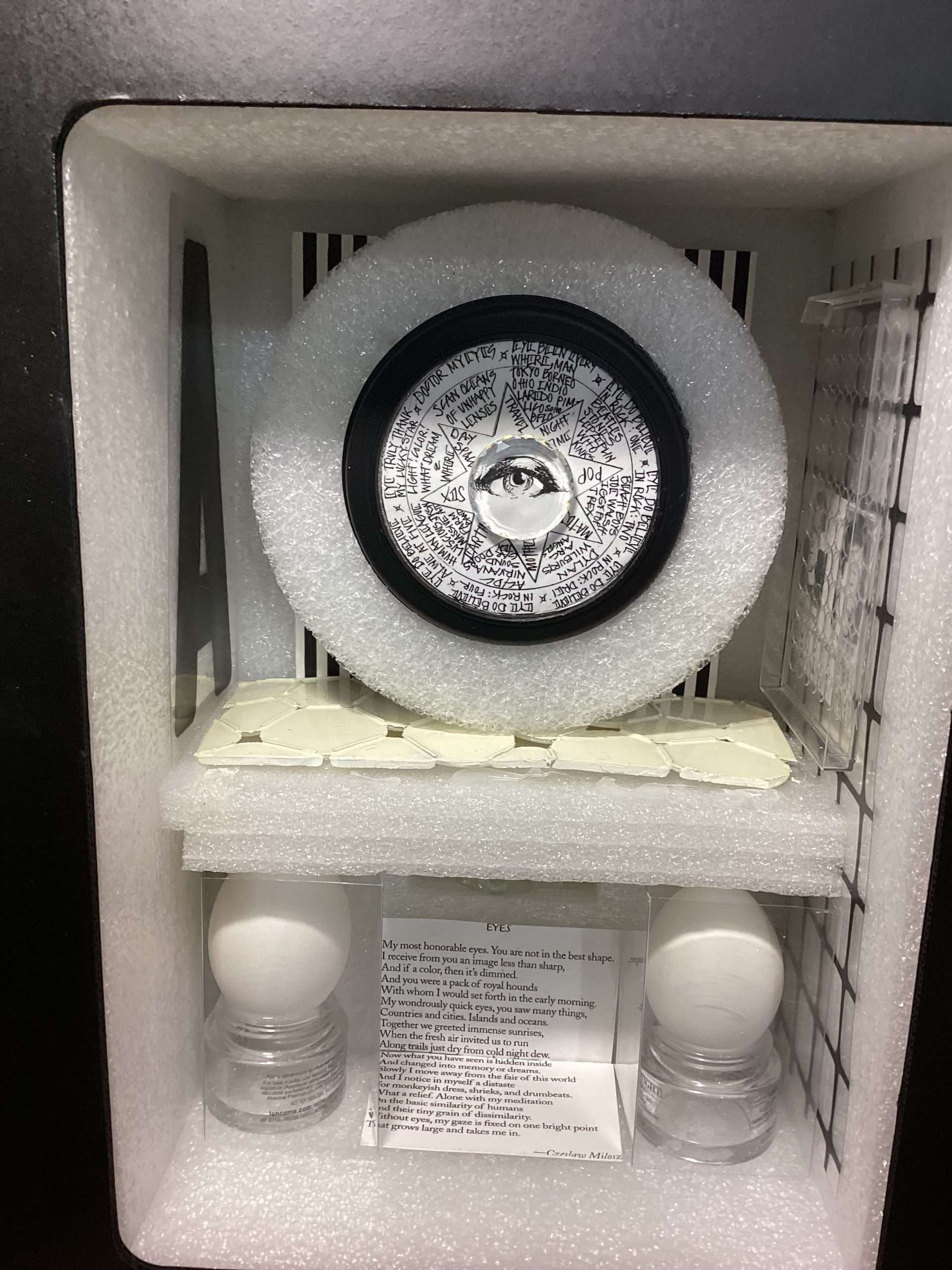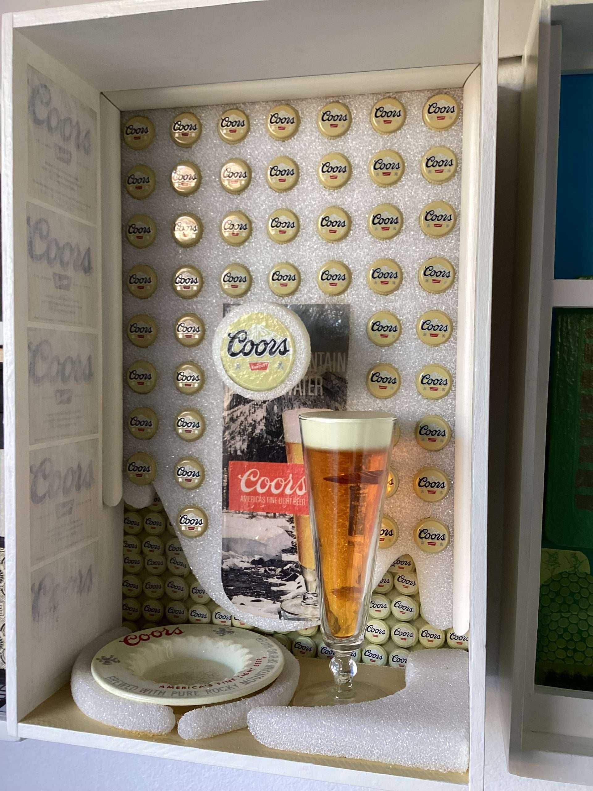Other box elements explained: “plaster face mask” is of me. It was created with the help of Mark McCloud a San Francisco artist. The “straw” is a Charlie Watts (RIP) drumstick.