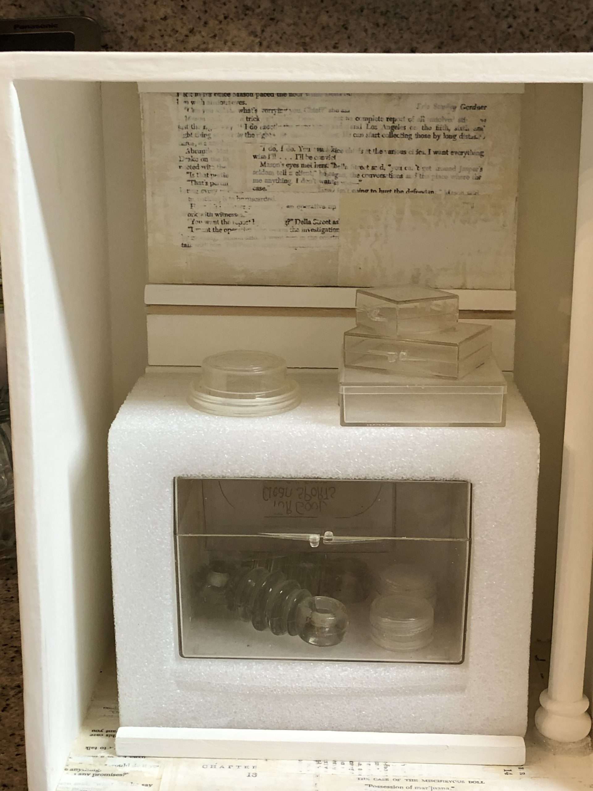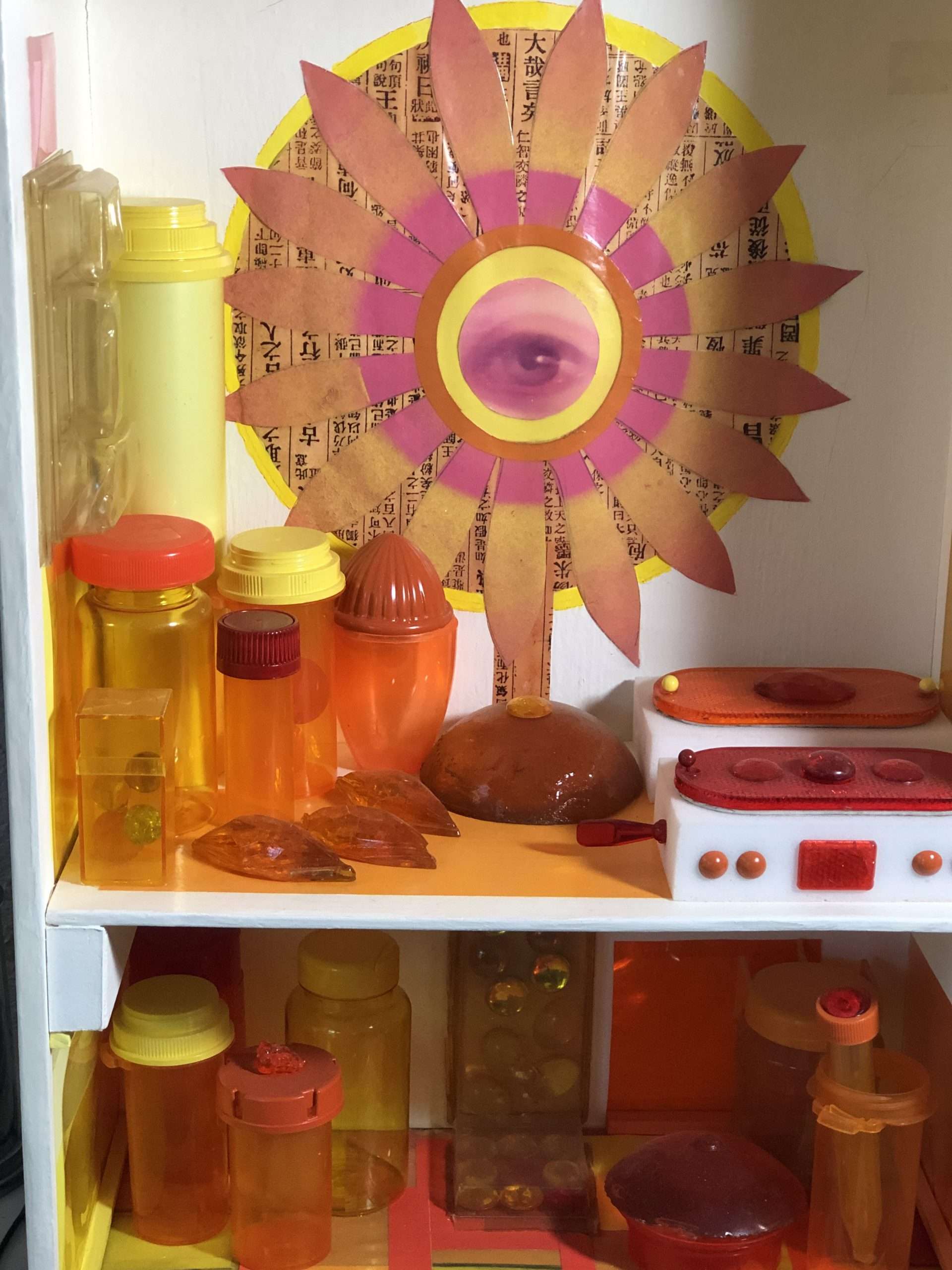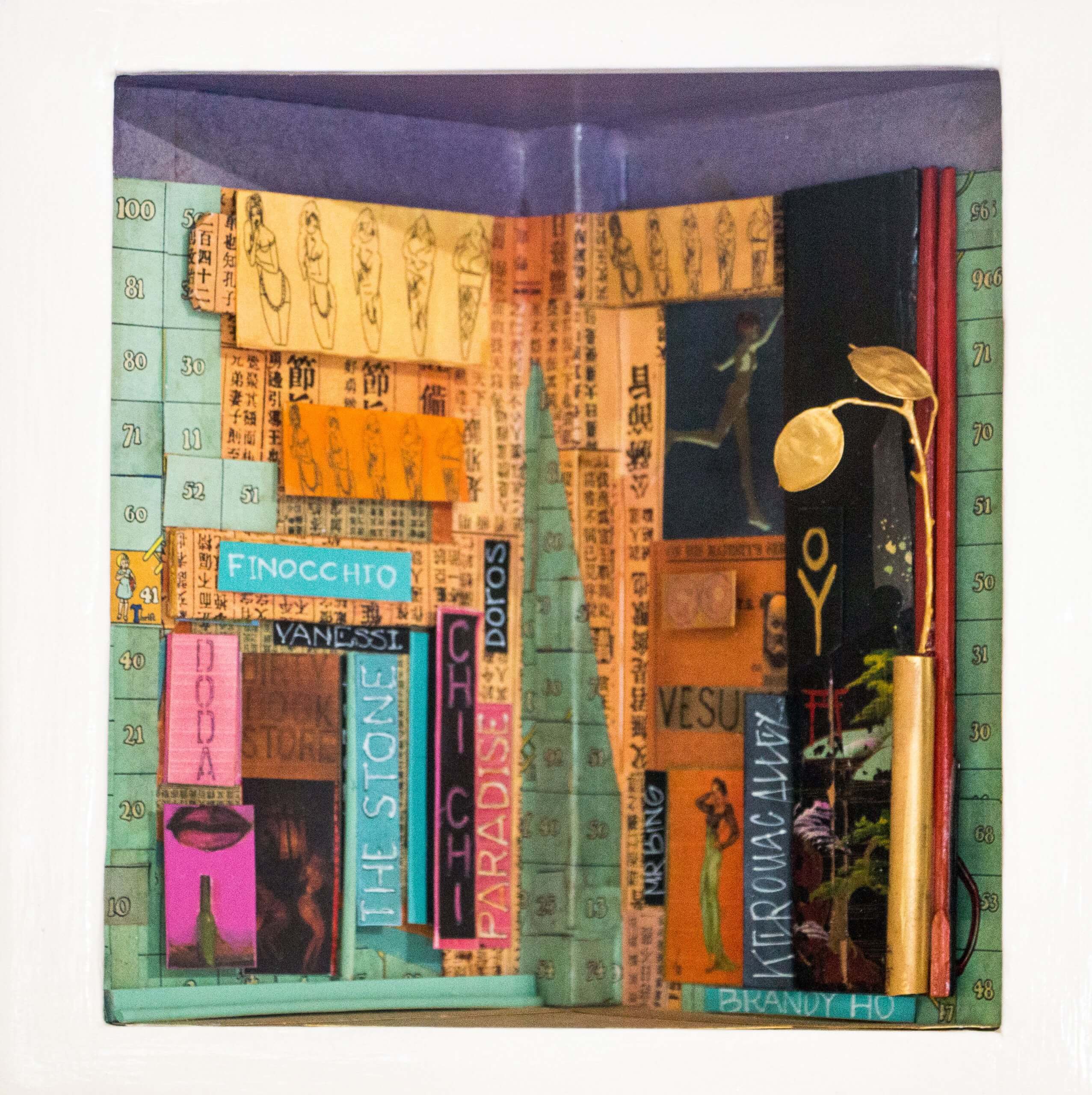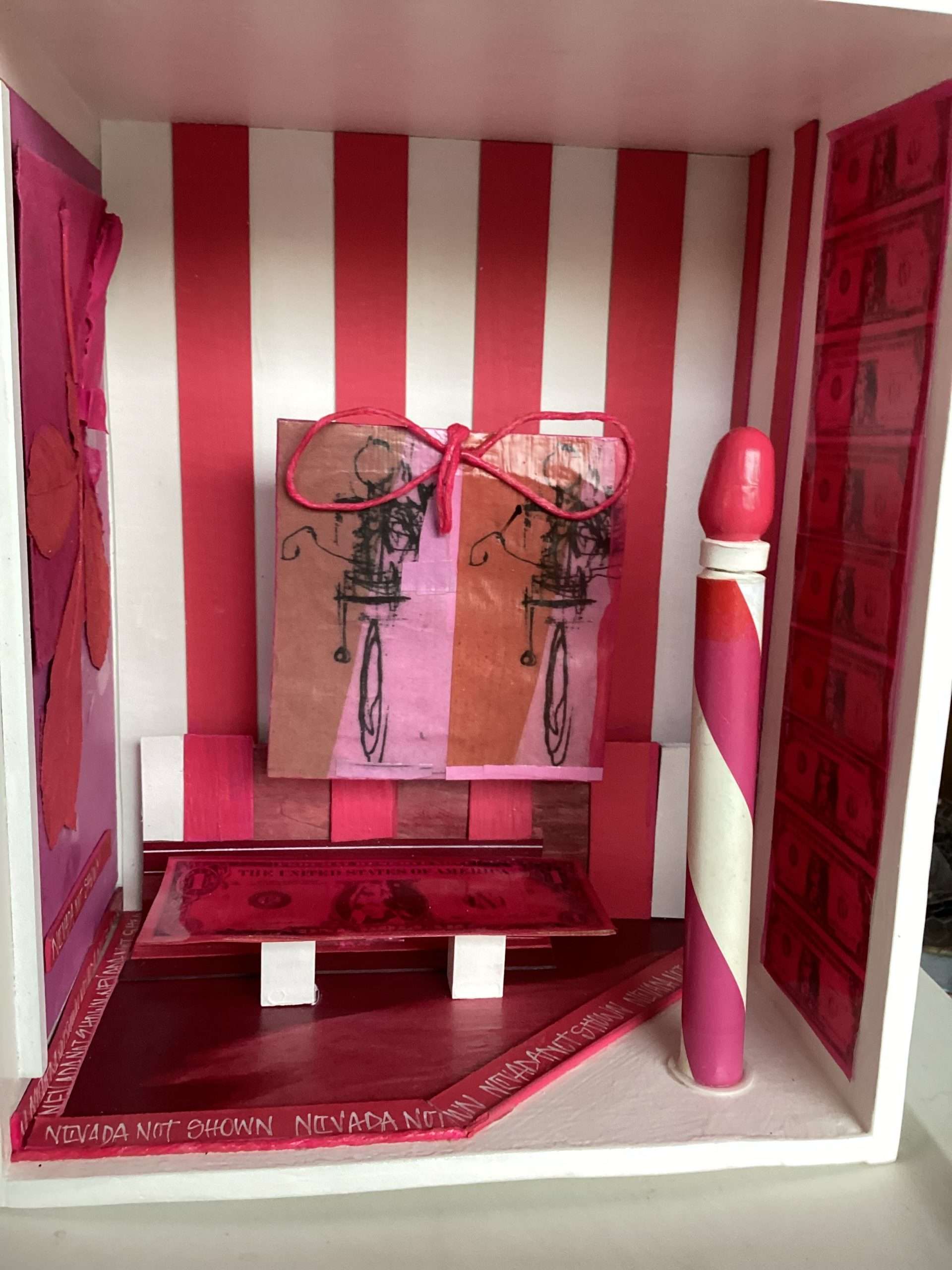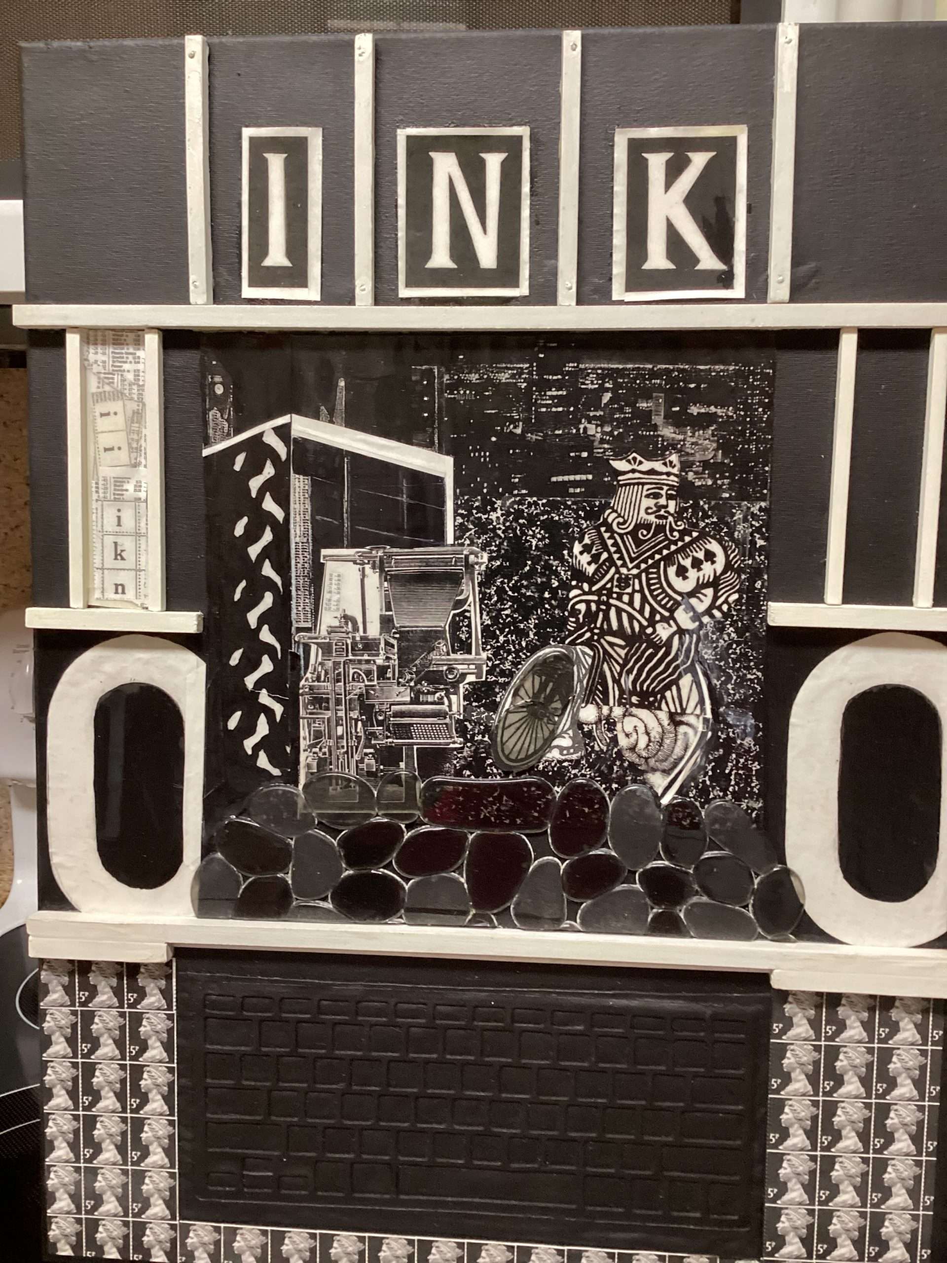 Other box elements explained: “plaster face mask” is of me. It was created with the help of Mark McCloud a San Francisco artist. The “straw” is a Charlie Watts (RIP) drumstick.