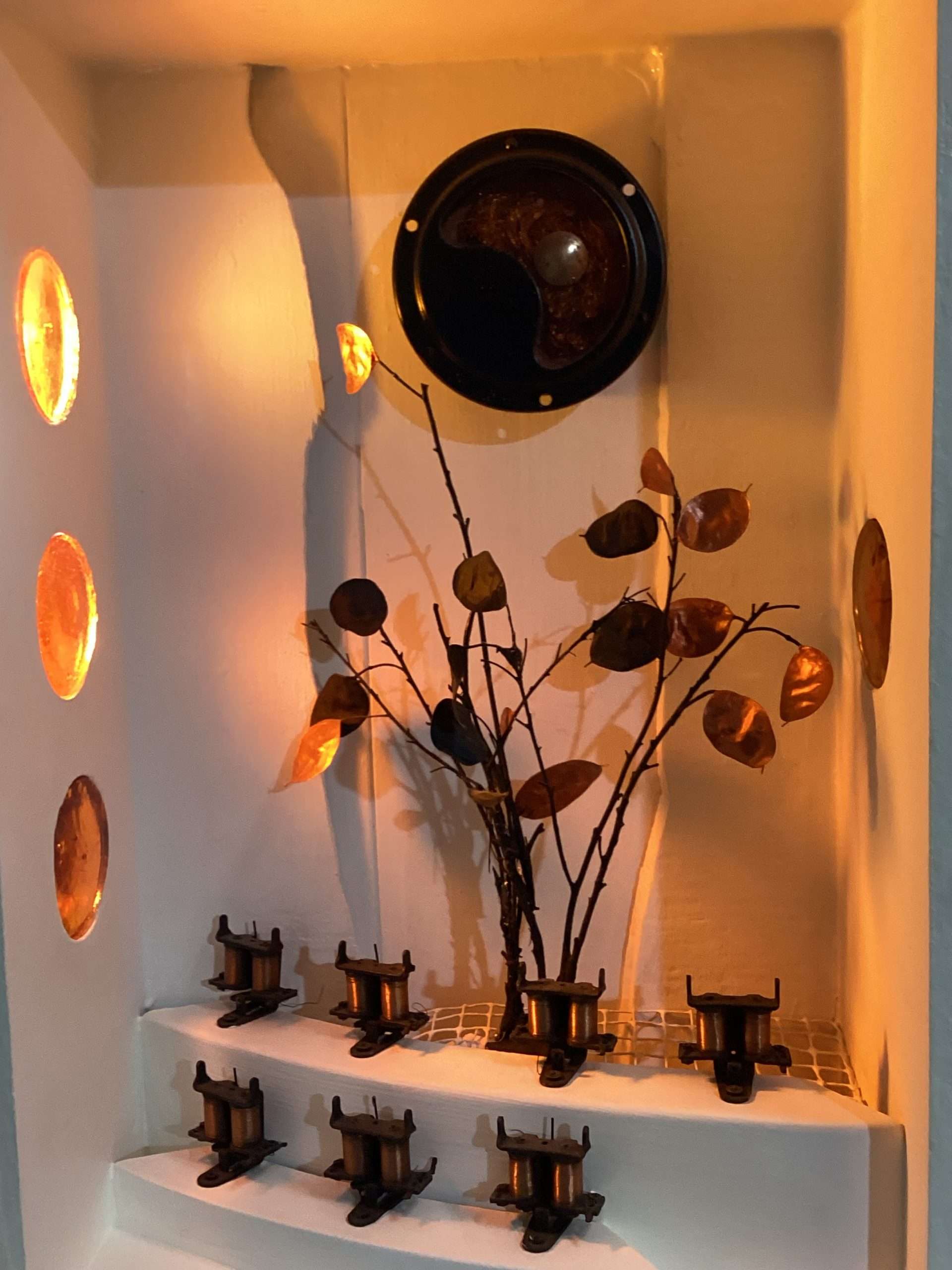 The antiquey wooden clothes hangers were covered with all sorts of antique formal wear I collected. The detachable white shirt collar (rear wall) had been one of my regular costumes from those days.